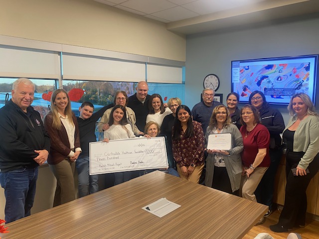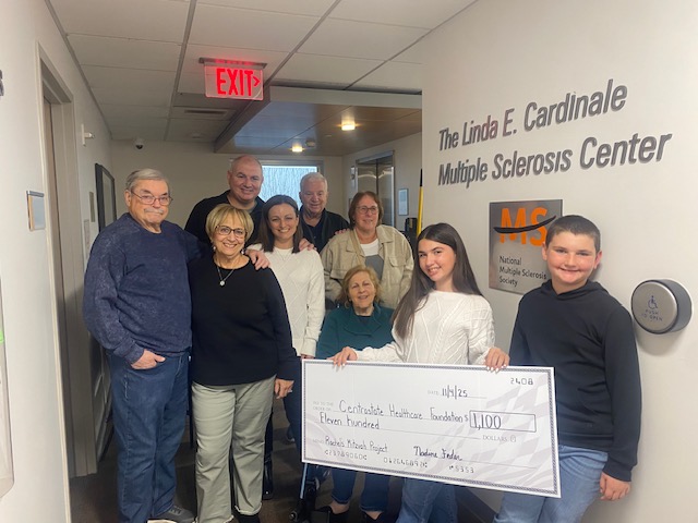 Members of the Lish and Feder families visited CentraState to present a check in support of the Linda E. Cardinale Multiple Sclerosis Center at CentraState.Ā Rachel Feder created bracelets and sold them as part of her mitzvah project with the proceeds benefitting the MS center.Ā Ā Dr. Jasmin Patel, Medical Director, Maya Jiries and members of the MS center staff joined in the celebrations and are grateful to Rachel, Ellen, and their families for this great show of support.Ā Ā For more information please visit https://www.centrastate.com/locations/linda-e-cardinale-multiple-sclerosis-center/.Ā Ā If you would like information on our grateful patient program, please visit https://www.centrastatefoundation.org/about/grateful-patients/.Ā